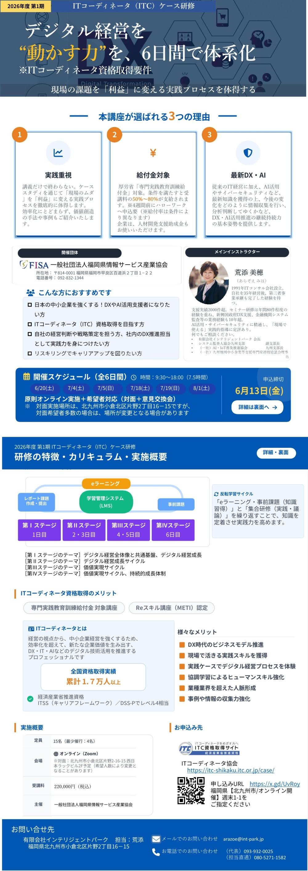 2026年度 第1期 ITコーディネータ(ITC)ケース研修